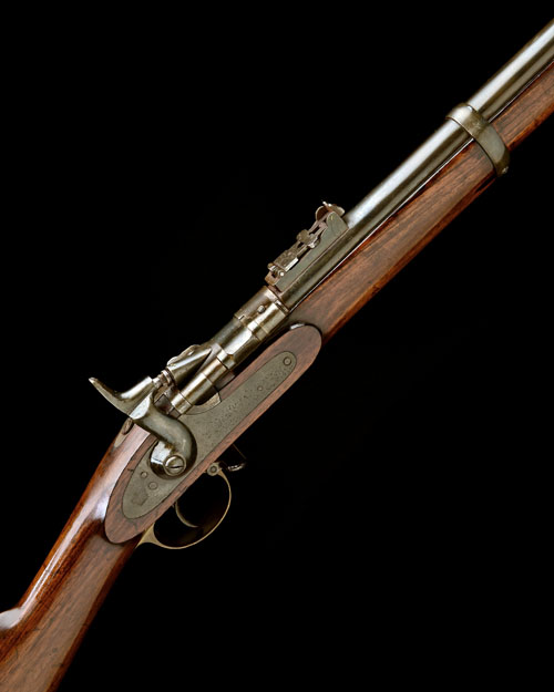 dated for 1874, with 36 1/2in. barrel, block and blade fore-sight, elevating ladder rear-sight, flip-open breech-block, spring-loaded thumb-catch, plain lock, un-signed (some pitting to lockplate), plain hammer, walnut three-quarter stock, brass furniture, three iron barrel-bands and jag-ended iron ramrod (pitted)