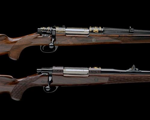 A FINE GARNITURE OF COMMEMORATIVE BOLT-MAGAZINE SPORTING RIFLES CELEBRATING THE HISTORY OF BELGIUM, one in 7x64mm, serial no. 001 and one in 7mm Rem Mag, serial no. 1 / 5,