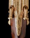 circa 1855 and for the Indian market, with re-gilded fully fluted 32in. barrels, the top-rib signed 'REILLY 502 NEW OXFORD STREET LONDON' and surrounded by a field of engraved acanthus scrolls, further panels of acanthus scroll-work forwards of the fore-end and at breech, scroll engraved re-gilded top-tang, re-gilded fully acanthus scroll engraved bar action locks signed 'REILLY LONDON', en-suite hammers, re-finished highly figured chequered walnut half-stock (cracked at hand), re-gilded furniture including heel-plate with engraved spur, fully scroll engraved trigger-guard bow and tang, engraved barrel wedge escutcheons and ramrod throat, fluted ramrod pipes and ebony ramrod; TOGETHER WITH its manufacturers walnut presentation case bound on the exterior with pierced and engraved brass mounts with a vacant central shield, the interior lined in embossed red velvet (thinning in places) with gilt borders and details, the inner lid signed in gilt block letters 'E.M. REILLY 502 NEW OXFORD STREET LONDON', the tray compartmented in the English manner and containing the original red morocco leather shot flask with gilt embossed decoration, the possibly original but period powder flask signed 'JAMES DIXON & SONS, SHEFFIELD' and an 'E.M. REILLY' brass wad-punch