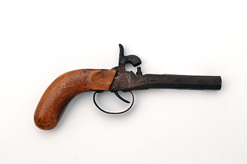 A 54-BORE PERCUSSION BOXLOCK POCKET-PISTOL, UNSIGNED, serial no. 96,