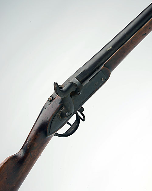 * A .69 PERCUSSION CONTINENTAL SPORTERISED SERVICE MUSKET, UNSIGNED, serial no. 3968 Belgian, circa 1850, with 34 1/4in. barrel, plain bar-action lock possibly converted from flintlock, walnut half-stock (shortened at fore-end, some worm to butt) and iron furniture