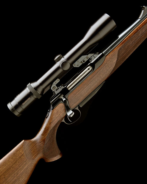 25 3/4in. nitro barrel with ramp-mounted blade fore-sight, the receiver mounted with a Swarovski 1,5-6x42 Habicht telescopic sight in quickly-detachable mounts, detachable box magazine, set trigger, figured pistolgrip stock with monte carlo comb, quickly-detachable sling swivels, 14 1/8in. pull including 3/4in. ventilated rubber recoil pad, in its fitted take down case