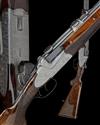 28 1/4in. nitro reproved double 16-bore shot barrels (partially struck off) with 7mm ventilated matt top-rib, 2 3/4in. chambers, bored approx. 3/4 and full choke; each with wooden side fillets and shared fore-end, quadruple-grip action with side-bolsters, removable striker discs, automatic safety, side mounted gold pin cocking-indicators, set front trigger, fully engraved with Germanic scrollwork, bright and blued finish, 14 1/8in. figured pistolgrip stock with cheekpiece, pistolgrip-cap with inset escutcheon monogrammed 'FG', sling swivels and including 3/4in. ventilated rubber recoil pad, weight 7lb. 11oz. (double rifle), 7lb. 4oz. (combination) and 6lb. 13oz. (shot)