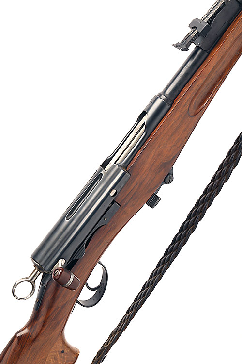 ** SWISS .22 L.R. SCHMIDT RUBIN 'MODEL 1889' STRAIGHT-PULL SERVICE RIFLE, Serial no. 38002, 31in. nitro barrel, block-mounted fore-sight, tangent rear-sight graduating to 2000 meters, box magazine, leather sling