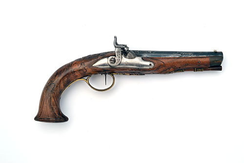 AN EARLY 60-BORE PERCUSSION PISTOL SIGNED KUCHENREUTER, no visible serial number,