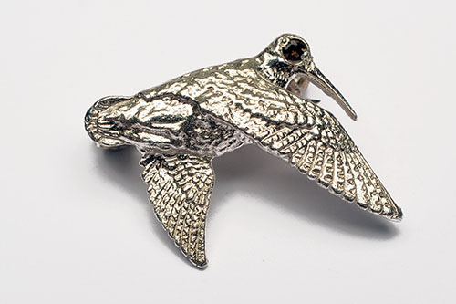 A NEW AND UNUSED SMALL GILT LOST WAX WOODCOCK BROOCH OR CAP BADGE,