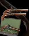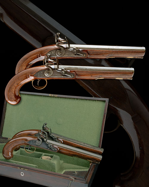 STRAND, LONDON A CASED PAIR OF 28-BORE FLINTLOCK DUELLING-PISTOLS, no visible serial numbers,