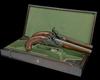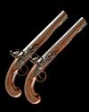 A CASED PAIR OF 28-BORE FLINTLOCK DUELLING-PISTOLS, no visible serial numbers,