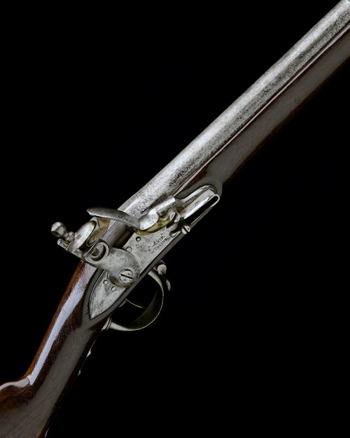 Italian, circa 1815, with brushed bright 40in. barrel, the top-tang stamped 'MO 1814', French-style military lock signed 'A. A. R. MANIF DT TORINO', brass pan, walnut three-quarter stock, iron furniture including trigger-guard tang with finger-ribs, two barrel bands and twin-banded nose-cap, iron ramrod, some staining to iron surfaces