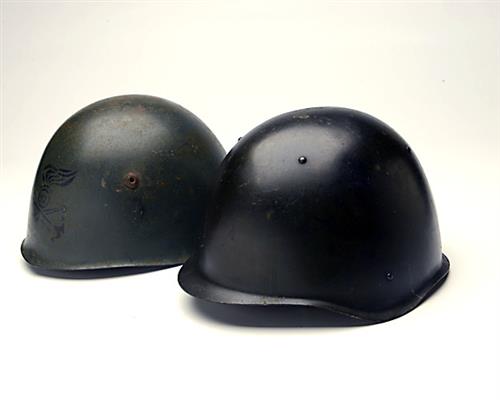 TWO WORLD WAR TWO STEEL HELMETS, the first Russian, complete with liner and chin-strap, the second Fascist Italian, missing chin-strap