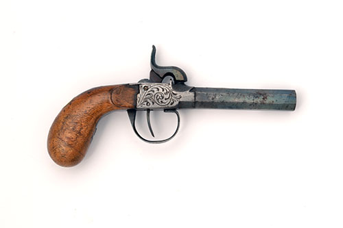 A 40-BORE PERCUSSION BOXLOCK POCKET-PISTOL, UNSIGNED, no visible serial number,