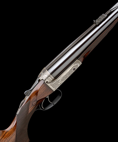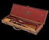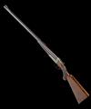 26in. nitro chopperlump barrels, matt sight rib with open sights and two folding leaf sights, white metal inlaid sight lines and marked for 100, 200 and 300 yards, ramp-mounted bead fore-sight with flip-up moonsight, tubes engraved 'GEORGE GIBBS. 39. CORN STREET. BRISTOL' ".360/NO.2 NITRO" and " 55 GRS. CORDITE, & 320 GRAIN. BULLET", treble-grip action with removable striker discs, automatic safety with gold-inlaid 'SAFE' detail, intercepting sears, articulated front trigger, profusely engraved with fine acanthus scrollwork, retaining slight traces of original colour-hardening, 14 3/4in. figured pistolgrip stock with steel pistolgrip-cap, sling eyes, bolstered fore-end with grip-catch release lever, weight 8lb. 12oz., in its brass-cornered oak-lined leather case with some accessories and a leather pouch with spare sights, strikers and mainsprings, the lid exterior marked J. N. PRICE WOOD. 12TH LANCERS'