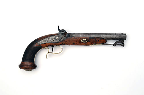 A 16-BORE PERCUSSION RIFLED HOLSTER-PISTOL, UNSIGNED, no visible serial number,