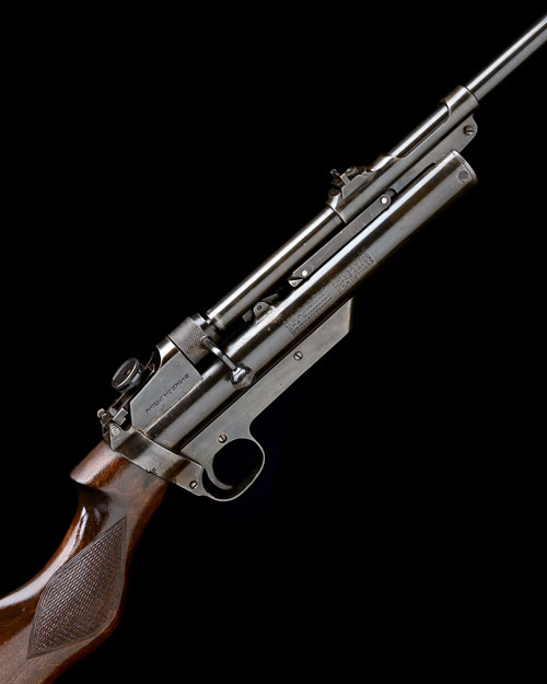 circa 1937, with 25 1/2in. sighted barrel with push-button release, bolt-action barrel locking catch, adjustable tang-sight to the rear of the receiver with Parker-Hale variable diopter, plain air-chamber with various world patents, no safety catch, walnut saw-handled butt-stock, older refinish throughout