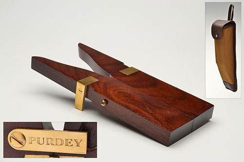 JAMES PURDEY & SONS A NEW AND UNUSED ROSEWOOD AND BRASS HINGED BOOT JACK,