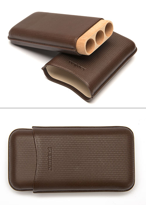 holds up to three double corona cigars, chequered leather with removable humidor capsule