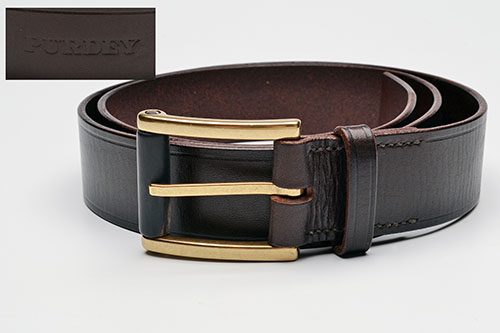 JAMES PURDEY & SONS A NEW AND UNUSED BRASS AND ANGUS HIDE BELT,