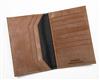 A NEW AND UNUSED TAN LEATHER GOATSKIN-LINED WALLET,