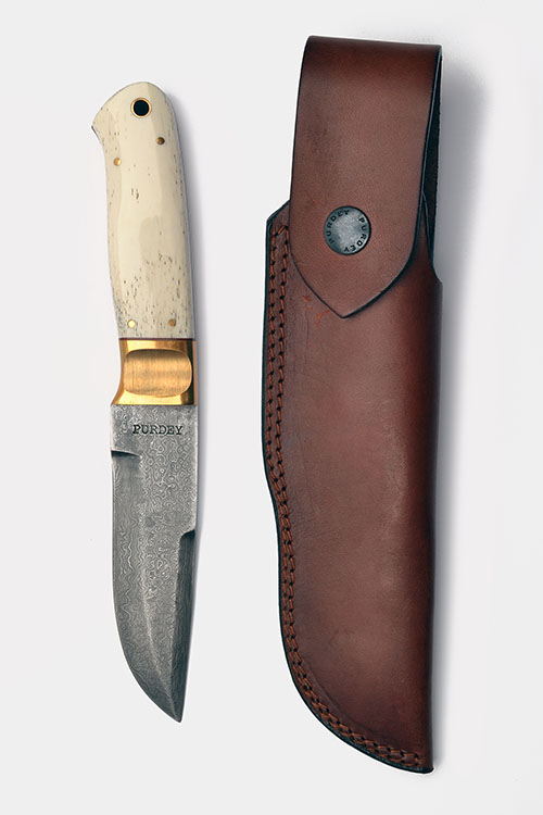 JAMES PURDEY & SONS A NEW AND UNUSED DEER HUNTER DAMASCUS-BLADED FULL TANG SPEAR POINT FIELD KNIFE,