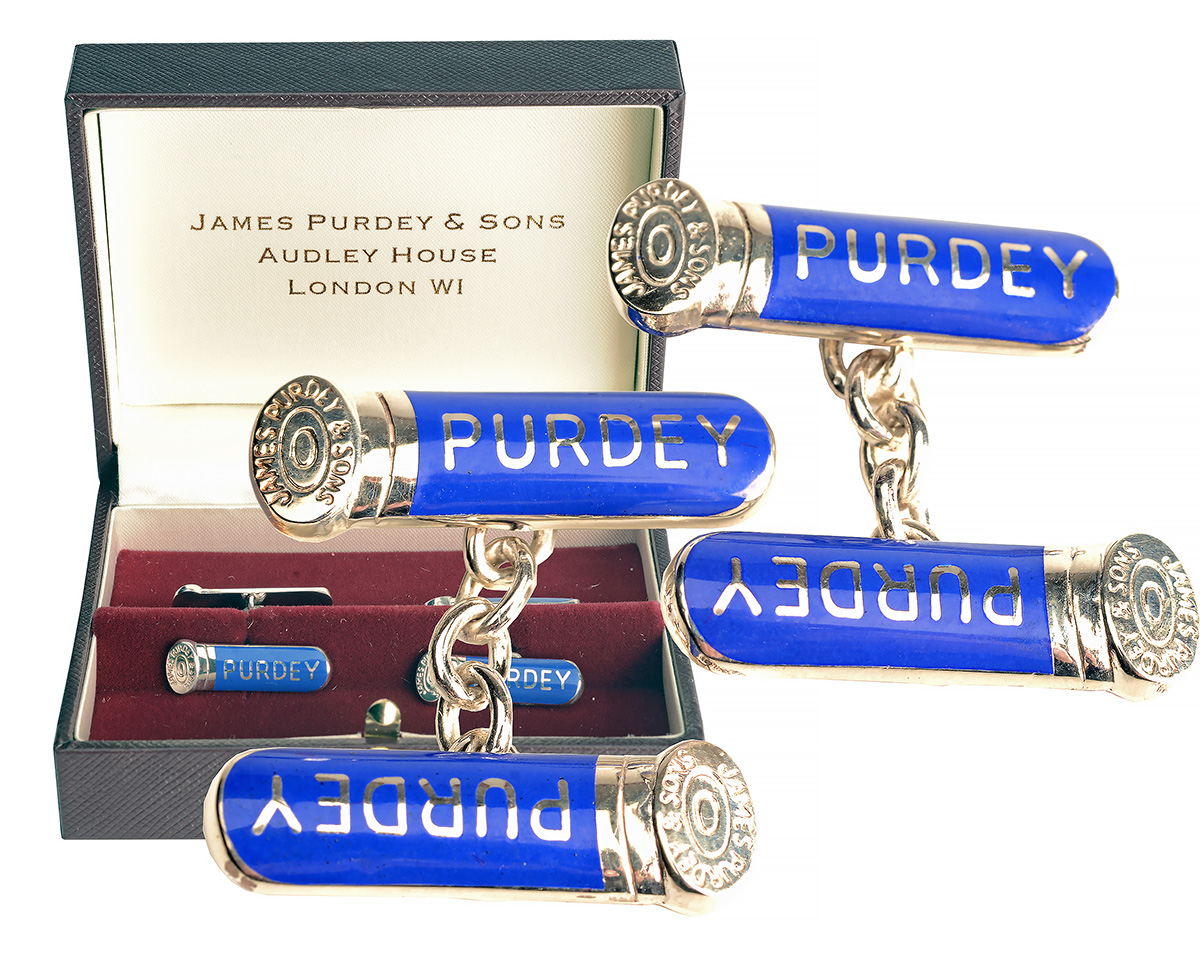 JAMES PURDEY & SONS A SET OF ENAMEL AND STERLING SILVER CARTRIDGE CUFFLINKS,