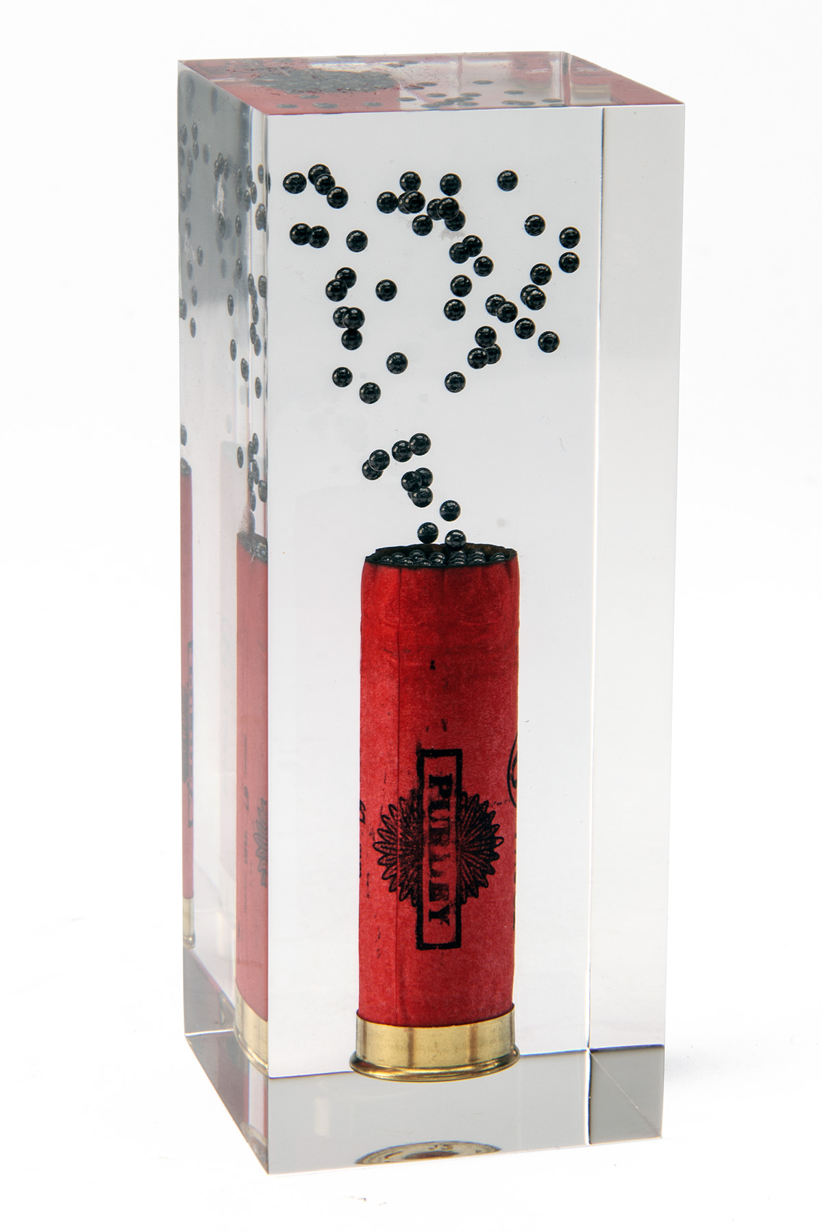 JAMES PURDEY & SONS A PAPER-WEIGHT OF AN OPENED 12-BORE PAPER-CASE CARTRIDGE WITH SHOT STRING,