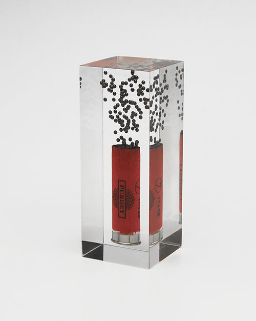 A NEW AND UNUSED PAPER-WEIGHT OF AN OPENED 12-BORE PAPER-CASE CARTRIDGE WITH SHOT STRING,