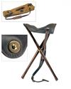 A FINE NEW AND UNUSED LIGHTWEIGHT WOOD AND LEATHER TRIPOD SEAT,