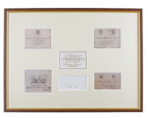 † A FRAMED COLLECTION OF JAMES PURDEY & SONS TRADE / CASE LABELS,