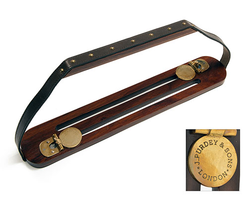 † A NEW & UNUSED JAMES PURDEY & SONS ROSEWOOD AND LEATHER GAME CARRIER, with brass fittings, engraved 'PURDEY & SONS LONDON'