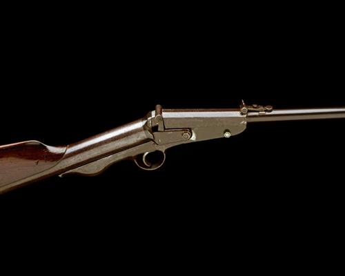 A BONEHILL, BIRMINGHAM .177 BARREL-COCKING SINGLE-SHOT AIR-RIFLE, MODEL 'BRITANNIA 'ANGLO SURE-SHOT MK I'', serial no. 1457, circa 1907, with two stage 20 1/2in. barrel, dove-tailed front and adjustable rear-sights, the top-flat signed 'ANGLO SURE-SHOT MARK 1, MADE ONLY FOR R. RAMSBOTTOM, MANCHESTER' and 'COX'S PATENT', the side of breech stamped 'THE BRITANNIA' surrounding a seated figure of Britannia bisecting the legend 'REGD TRADE MARK', stirrup barrel locking latch, slanted air-chamber with applied walnut comb, cocking link housing the trigger-unit stamped 'RD394207', the whole darkly stained with traces of finish