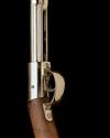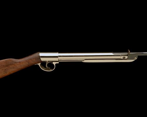 circa 1905, with blued two-stage sighted 16in. barrel, the underside stamped 'IN GERMANY MANUFACTURED', the left side of breech stamped with 'PATENT' and 'MG' over 'R' within a circle, nickel-plated air-chamber, walnut straight-hand butt-stock, plated heel-plate and cast trigger-guard, plated cocking link, the whole professionally refinished throughout