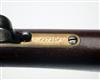 for 1877, with blued 20in. round barrel, the top signed 'WINCHESTER'S REPEATING ARMS, NEW HAVEN CT' over 'KINGS IMPROVEMENT PATENTED MARCH 29 1866 OCTOBER 16 1860', blade fore-sight on the front barrel-band, folding 'L' shaped rear-sight, bronze open-topped receiver, no provision for peep-sight or model designation stamp, walnut straight hand butt-stock, carbine style brass butt-plate with central sliding trapdoor, the interior cavity containing the original take-down cleaning rod, larger sized finger-loop to underlever, walnut fore-end with barrel band, full length under-barrel magazine and saddle-ring to left hand side of receiver, much finish remaining with some surface corrosion