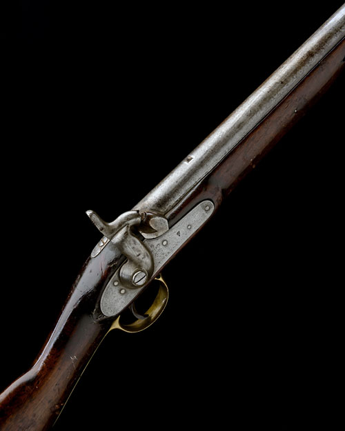 circa 1848, with brushed bright slightly shortened 38 1/2in. barrel, block fore-sight, dove-tail for rear-sight (missing), Tower proofs, plain military-style lock signed 'TOWER' beneath a 'V.R.' crown device (rubbed), walnut three-quarter stock (distressed), brass furniture and iron under-barrel ramrod