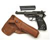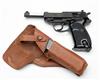 ** A 9mm (PARA) SEMI-AUTOMATIC PISTOL SIGNED WALTHER, MODEL 'P1', serial no. 303201, for 1975, with phosphated 5in. barrel, phosphated slide, anodised alloy frame and chequered black plastic grips, with a leather belt holster and spare magazine