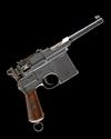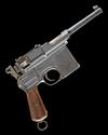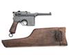 for between 1923-30, with 4in. sighted barrel, the rear-sight graduated to 1000 metres, bolt with short extractor, blued milled-side receiver and frame, the left hand side marked with the 'Mauser' trademark, new-style safety, 21 groove walnut grips of 'bolo' style, lanyard ring at heel, integral 10-shot magazine; TOGETHER WITH its matching walnut holster-stock marked with the 'Mauser' trademark (lid a later replacement)