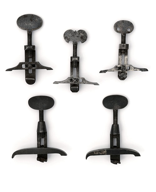 A COLLECTION OF FIVE ANTIQUE LOCK-SPRING CLAMPS,