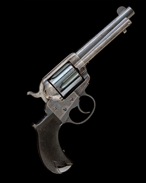 for 1878, with blued 4 1/2in. tapering barrel signed in two lines 'COLT'S PT FA MFG CO HARTFORD CT USA' over 'DEPOT 14 PALL MALL LONDON', the left side of barrel etched in a panel 'COLT'S DA 38', under barrel ejector-rod, solid colour-hardened frame with hinged loading gate, blued cylinder with long flutes, blued grip-straps and trigger-guard bow, chequered rosewood birdshead grips, the whole retaining much of its original colour and finish; TOGETHER WITH a framed Colt Heritage letter concerning the details of this revolver and a period leather full-flap holster
