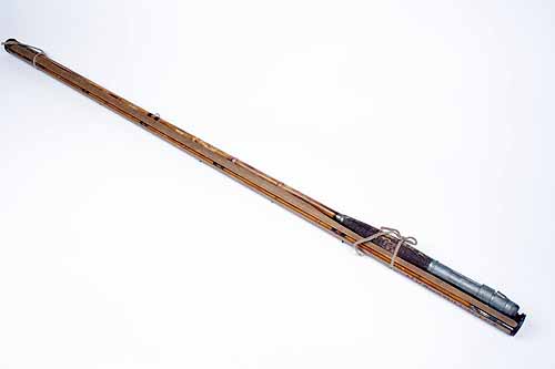 A VINTAGE THREE PIECE SPLIT CANE 10 FT 6 FLY FISHING ROD
