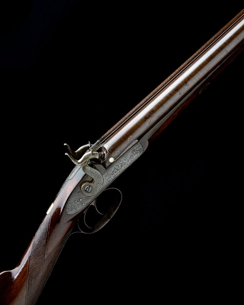 A CASED 14-BORE PERCUSSION SPORTING-GUN, no visible serial number,