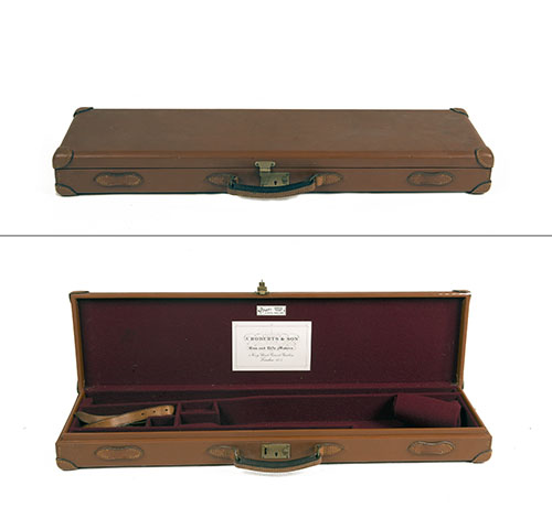 fitted for 28in, barrels, the interior lined with red baize, with a J. Roberts & Son trade label, brass lock (including key)