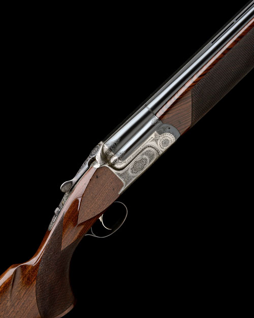 32in. nitro barrels with ventilated mid-rib and 8mm ventilated matt top-rib, 2 3/4in. chambers, multichokes (with spares), hold-open toplever, manual safety with integral barrel selector switch, bouquet and scroll engraving, brushed bright and blued finish, 15in. pistolgrip stock including 7/8in. rubber recoil pad, weight 8lb. 5oz., in a carton