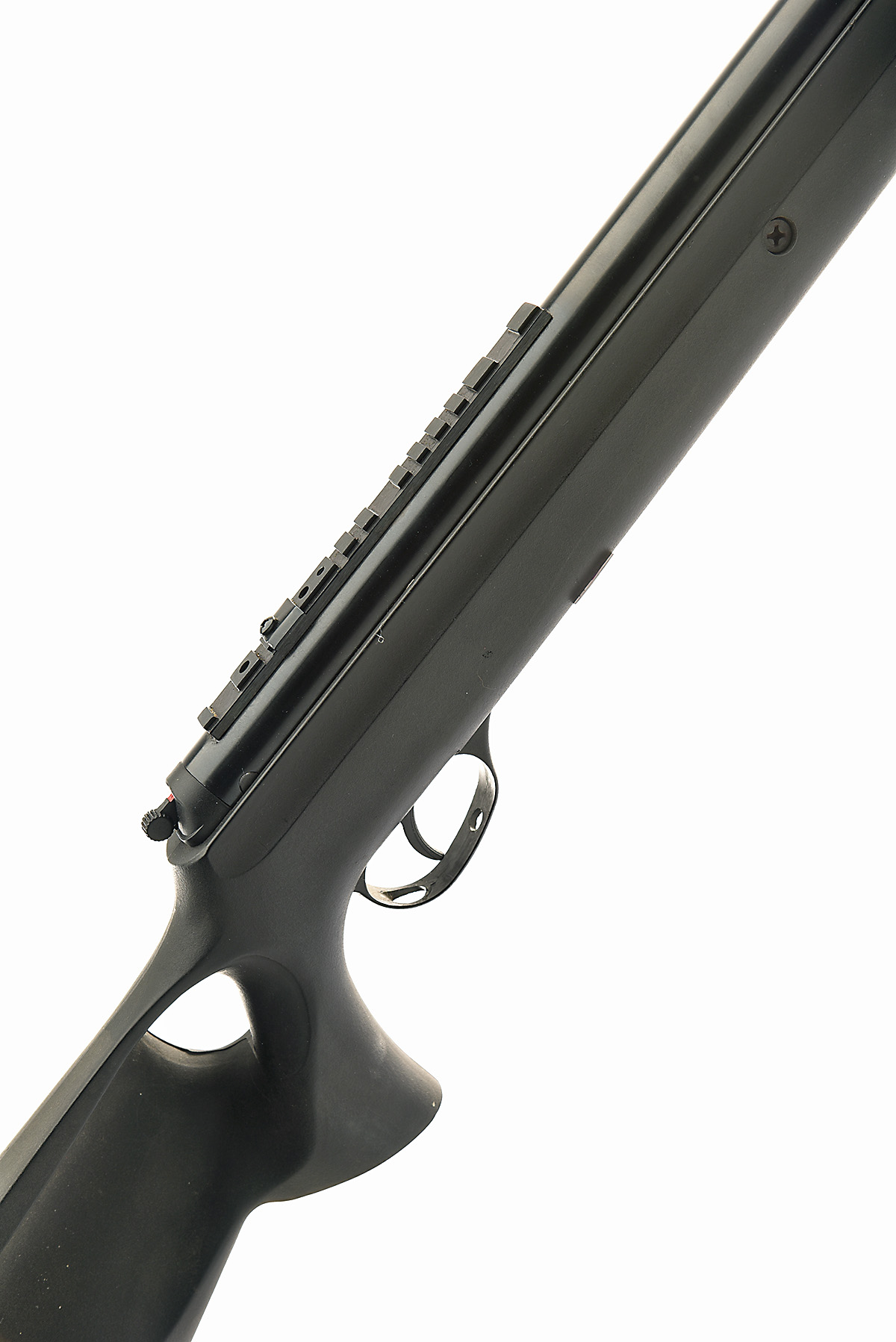 AN FAC-RATED .22 BREAK-BARREL AIR-RIFLE SIGNED HATSAN, MODEL '125 TH SYNTHETIC', serial no. 030808416, for 2008, with 19 1/2in. sighted barrel with built-on muzzle-weight, blued air-chamber with applied rail, black synthetic abs thumbhole stock, appearing little-used