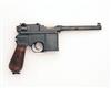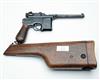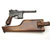 THE MAJOR PARTS OF A 7.63mm (MAUSER) SEMI-AUTOMATIC PISTOL WITH HOLSTER-STOCK, MODEL 'C96 BROOMHANDLE', serial no. 236215, for 1911-1915, commercial model, with 5in. barrel complete with elevating 1000m rear-sight and sliding bolt, milled frame (missing internals and hammer assembly) and 32 groove walnut grips, the whole with much original finish, complete with its correct matching number wooden holster-stock