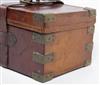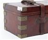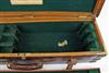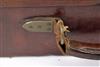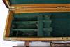 A BRASS-BOUND OAK AND LEATHER TWO-TIER TREBLE GUNCASE,