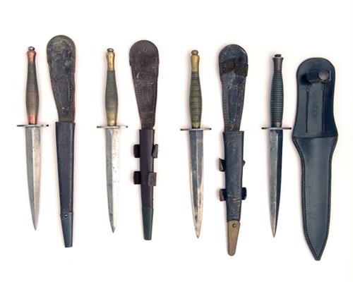 ** FOUR BRITISH-ISSUE FAIRBAIRN-SYKES MILITARY KNIVES,