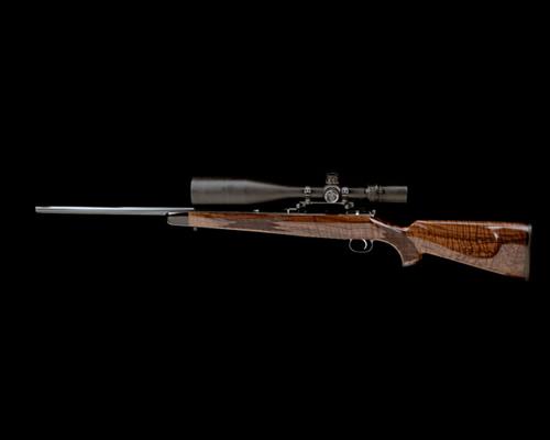 23in. unsighted nitro barrel, receiver mounted with a Nightforce NXS 8-32x56 telescopic sight on an M 03 quickly-detachable rifle scope mount, detachable box magazine, set trigger, well-figured pistolgrip stock with cheekpiece, missing rear sling swivel, 14 5/8in. pull including 1/2in. rubber recoil pad