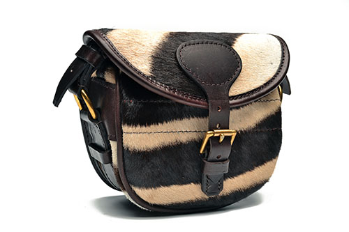 A HAND-MADE ZEBRA-SKIN SUEDE-LINED CARTRIDGE BAG,