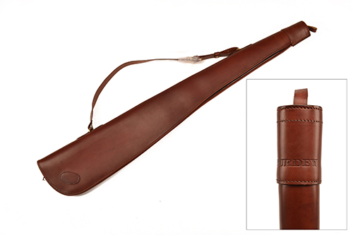 fitted for 32in. barrels, leather shoulder strap, brass fittings
