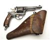 circa World War One, with octagonal 4 1/2in. barrel, gate-loading fluted cylinder, field-strippable frame and wood grips, complete with its leather service holster dated 1911 (2)