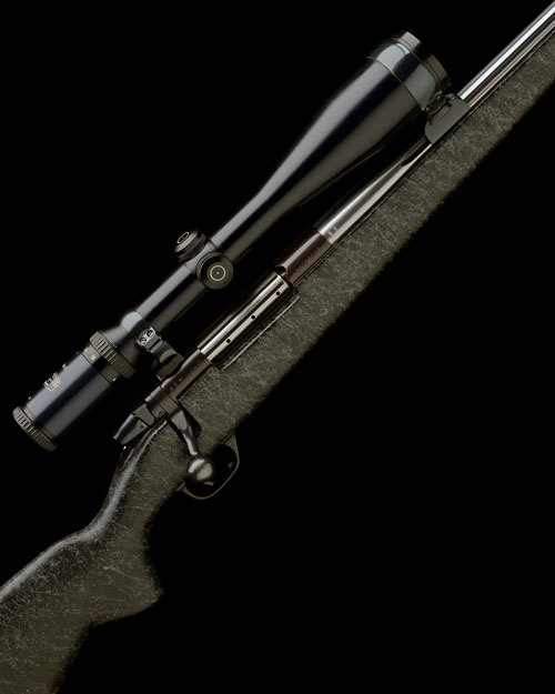 27 3/4in. fluted unsighted nitro barrel with muzzle break, mounted with a Schmidt & Bender 4-16x50 Varmint telescopic sight in quickly-detachable mounts, hinged floorplate with push button release, grey spider web finish synthetic pistolgrip stock with cheekpiece and raised comb, sling swivels, 13 3/4in. pull including 3/4in. rubber recoil pad